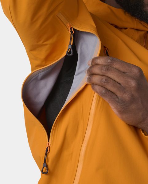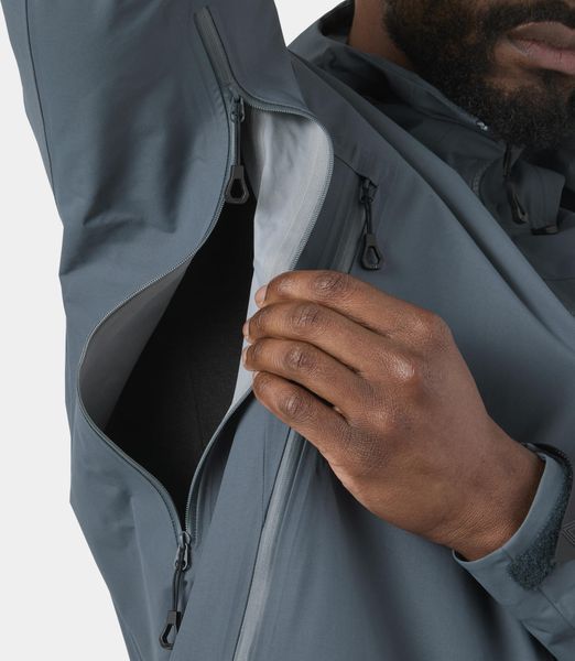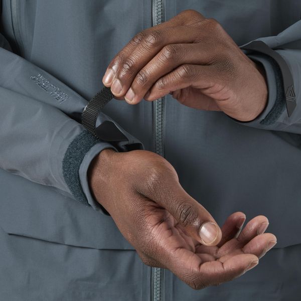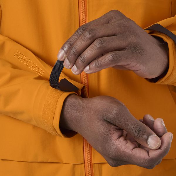 "Lightweight, waterproof and environmentally friendly men's jacket with innovative functions for optimum weather protection and comfort."