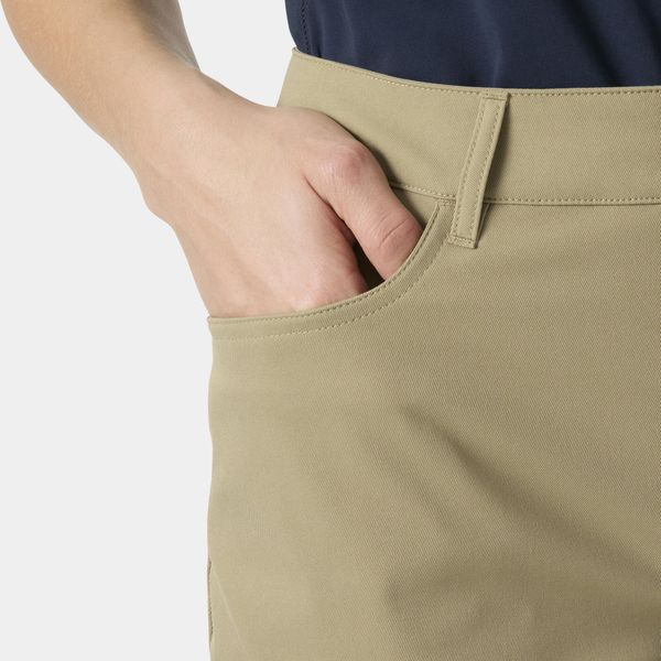 "The Holmen 5 Pocket Pant from Helly Hansen is the perfect choice for women who like to be out and about in nature. These hiking pants combine lightness and functionality to provide you with maximum comfort during any outdoor activity. Made from a robust 2-wege-stretch material consisting of 82% recycled polyester and 18% elastomultiester, they not only guarantee freedom of movement, but are also environmentally friendly. The pre-shaped knees provide additional flexibility on the trail, while the five-pocket design offers plenty of storage space for all your essentials. A discreet pocket in the side seam ensures that your valuables are safely stowed away."