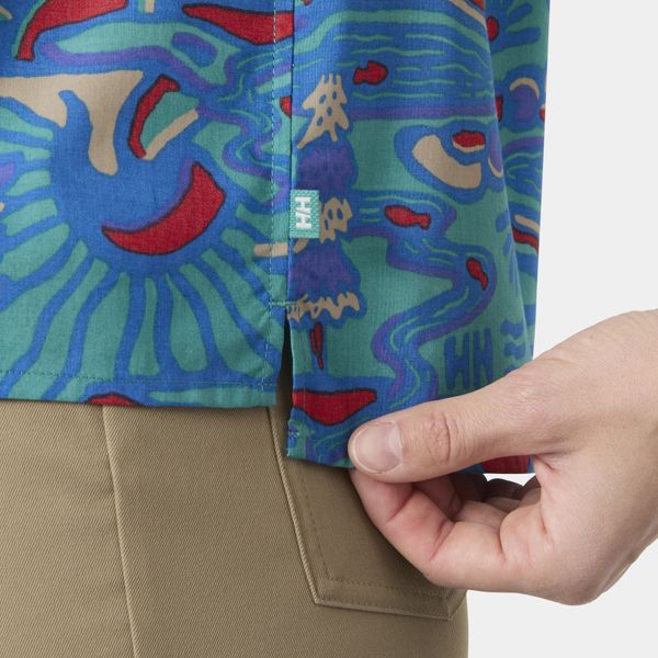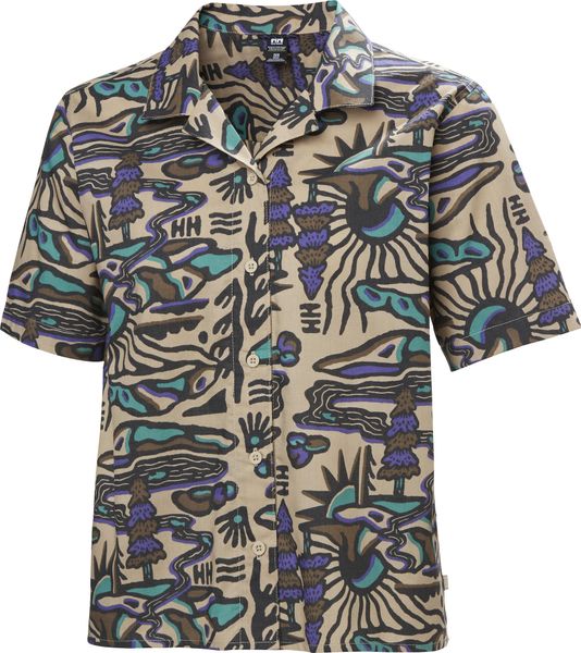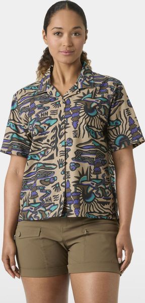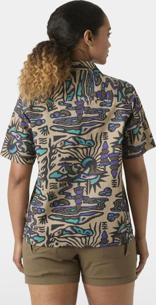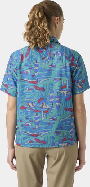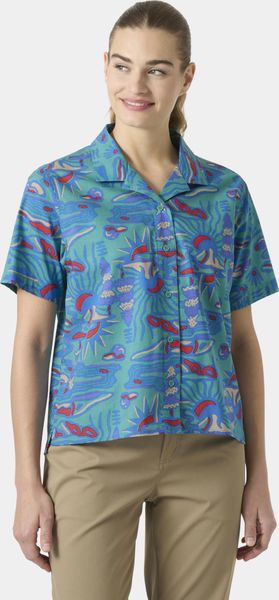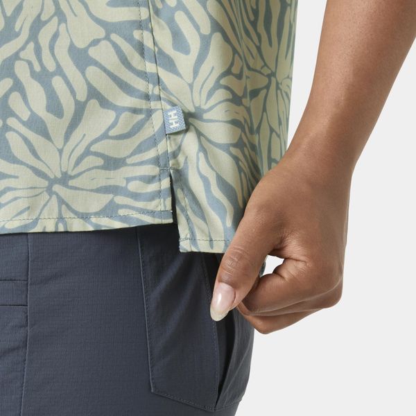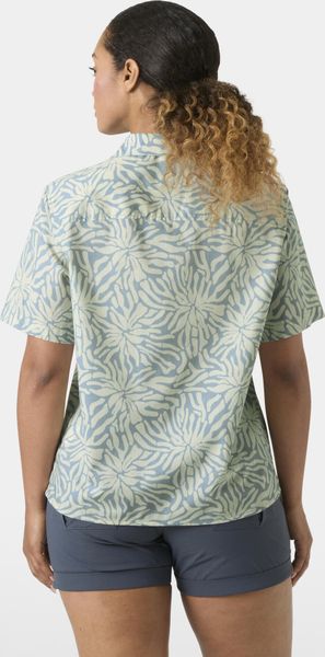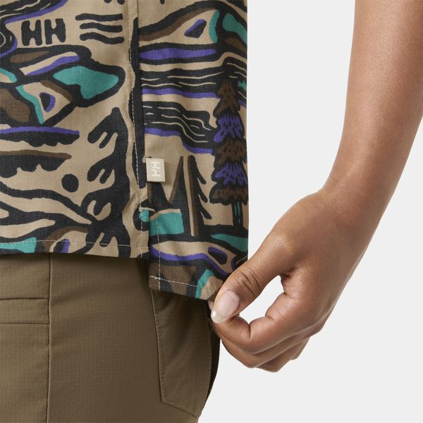 "This shirt stands out with its seasonal print and fashionable, shorter cut that will perfectly complement your summer wardrobe. The short sleeves provide additional freedom of movement and breathability, ideal for warm days. A practical hanger on the inside makes it easy to stow away and dry after an active day in the great outdoors."