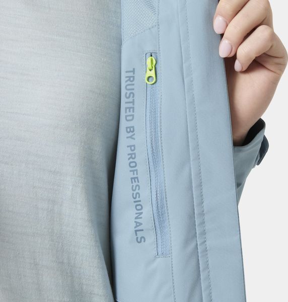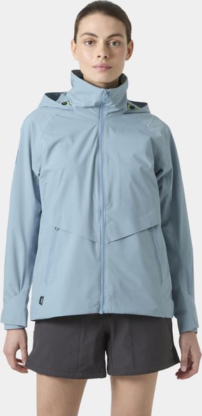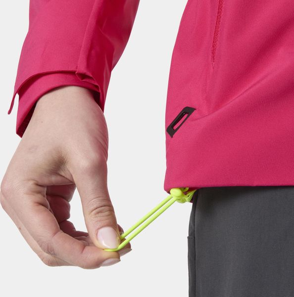 "Lightweight women's jacket for sailors, waterproof and windproof, with adjustable hood and comfortable mesh lining."