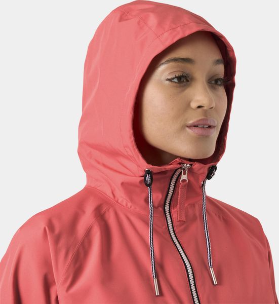 "Wind and waterproof women's rain jacket with adjustable hood for urban style and protection in all weathers."