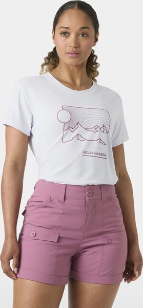 "The W Skog Graphic Tee from Helly Hansen is the ideal T-shirt for active women who value comfort and functionality. Made from a soft jersey fabric consisting of 96% recycled polyester and 4% elastane, this shirt not only offers environmentally friendly materials, but also optimum freedom of movement. Thanks to its moisture-wicking properties, the skin remains pleasantly dry even during intensive activities."