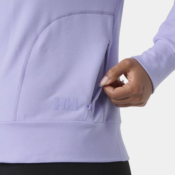 "Comfortable women's mid-layer with stretchy fabric, ideal for outdoor activities and everyday wear, with a practical side pocket."
