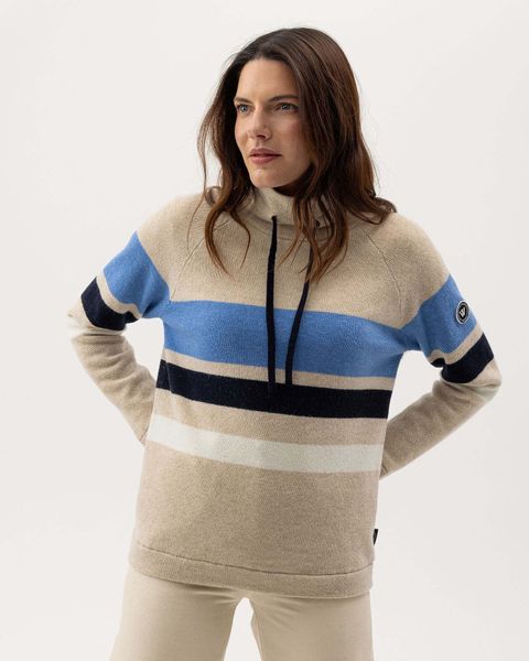 "The Angelika WP by Holebrook is a masterfully knitted sweater in mottled yarn that impresses with its soft wool blend. This sweater is the perfect choice for cold days, as it has a windproof lining that effectively blocks the wind and keeps you warm and cozy. The high collar with drawstring offers additional protection against the cold and gives the design a modern accent. Thanks to the high-quality materials and careful workmanship, this sweater is not only functional, but also stylish and durable. Ideal for outdooractivities or relaxed days in the city, it offers comfort and elegance in one."