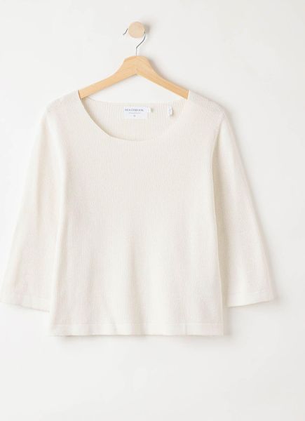 "Discover the Belle Crew Sweater by Holebrook u2013 a 100% organicu2013cotton masterpiece that combines both style and sustainabilityu2013. This feminine patent knit sweater is perfect for everyday urban wear and adds an elegant touch to any outfit. With its round neckline and wide sleeves, it offers a comfortable fit and is ideal for women who value comfort and fashionable details."