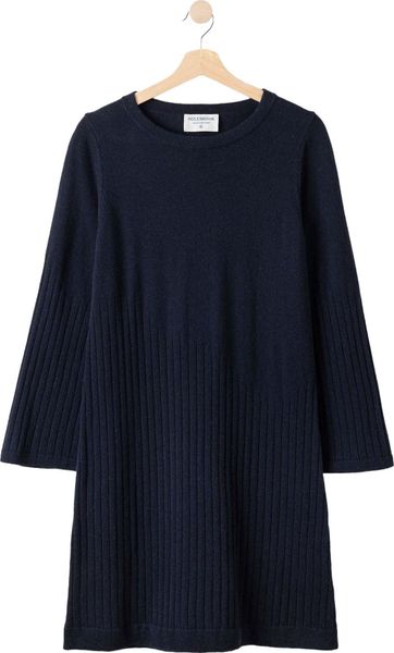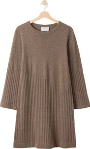 "The Charlotte Dress by Holebrook is a stylish knitted dress made from extra-fine merino wool that combines both comfort and elegance. The upper part of the dress is knitted flat, while the lower part and the sleeves have a refined structure that gives the dress a special touch. The round neckline and wide cuffs create a casual yet elegant look. The length of the dress reaches just above the knee, making it a versatile choice for different occasions."