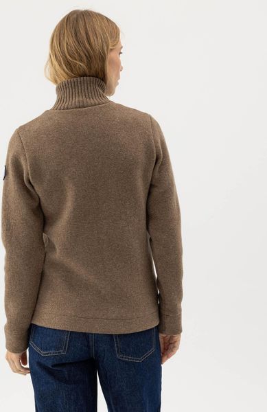 "Windproof women's wool knitted sweater with two-way zip and high comfort thanks to ribbed cotton collar."