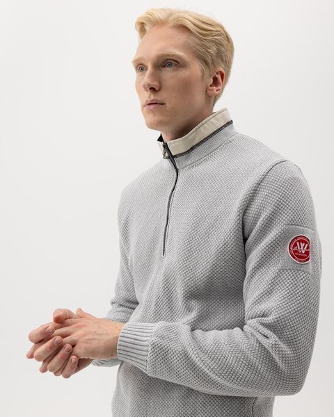 "The Classic WP from Holebrook is a windproof knitted sweater made from 100% cotton. The textured knitted look is complemented by woven details on the collar, while a short zip fastening and a regular to generous fit ensure a high level of comfort. The ribbed cuffs at the hem and on the sleeves contribute to the classic yet modern look."