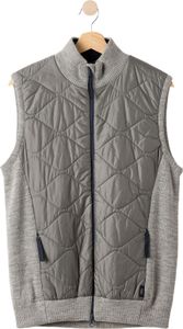 "Windproof gilet with water-repellent wool padding and high collar for optimum comfort during leisure activities."