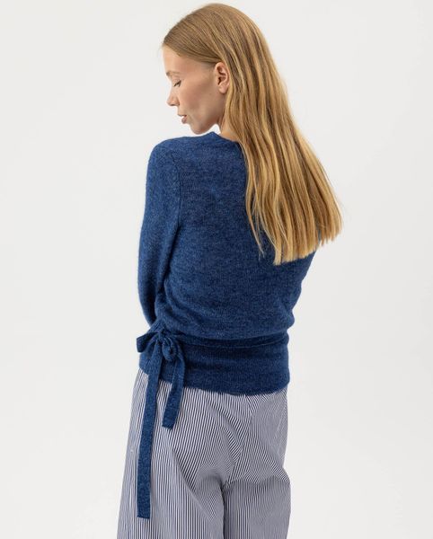 "The "Elizabeth Overlap" by Holebrook is an exquisite cardigan for women that impresses with its elegant wrap style and practical tie belt. Made from a high-quality alpaca blend, it offers a soft and airy feel that is ideal for any time of year. The regular fit ensures comfort and freedom of movement, while the rib-knitted cuffs add a stylish detail. This jacket is not only fashionable, but also sustainable, as it is produced in Europe. A must-have for women who value quality and style."
