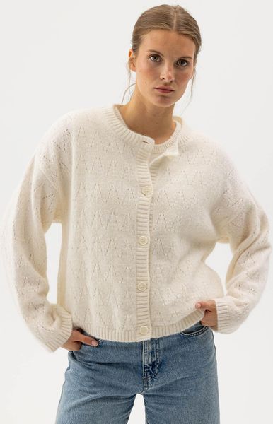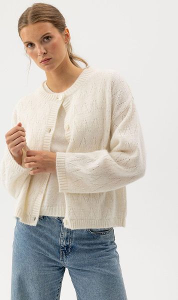 "The Elsy Cardigan from Holebrook combines stylish design with supreme comfort and is the ideal addition to any women's wardrobe. Made from a high-quality alpaca blend, this cardigan features a textured knit in a soft and airy quality that feels pleasant against the skin. The relaxed, loose fit and dropped shoulders create a modern look, while the ribbed knit trims add an elegant touch to the design."
