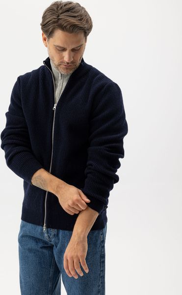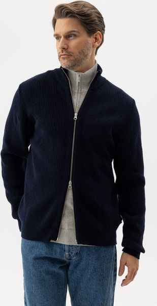 "The Frank Fullzip from Holebrook is the ideal companion for everyday wear. This stylish patent knit sweater made from a high-quality wool blend perfectly combines comfort and fashion. With a full-length metal two-way fastener, the sweater can be flexibly adapted to different temperatures and styles. The ribbed trims and double ribbed collar not only give the garment a special touch, but also ensure additional comfort."