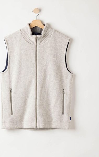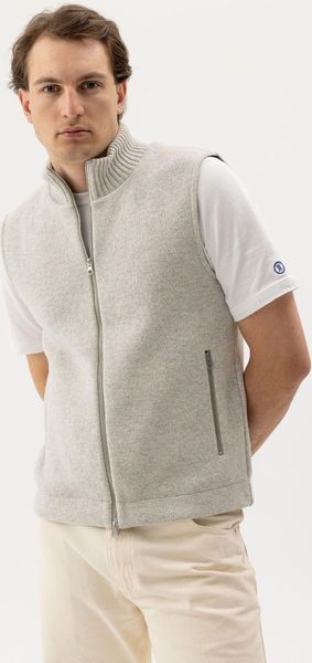 "Stylish, windproof men's vest made of wool with high comfort and sustainable European production."