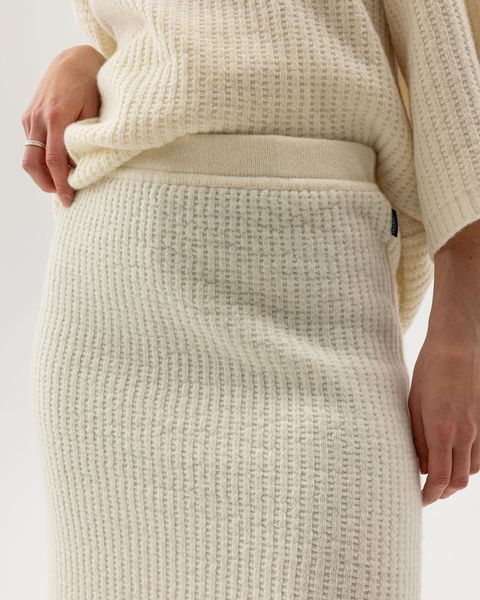 "Elegant knitted skirt made from a soft wool blend with an elastic waist, sustainably produced in Europe."