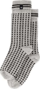 "Timeless knitted socks in a wool blend with a subtle pattern and ribbed top in three stylish colors."
