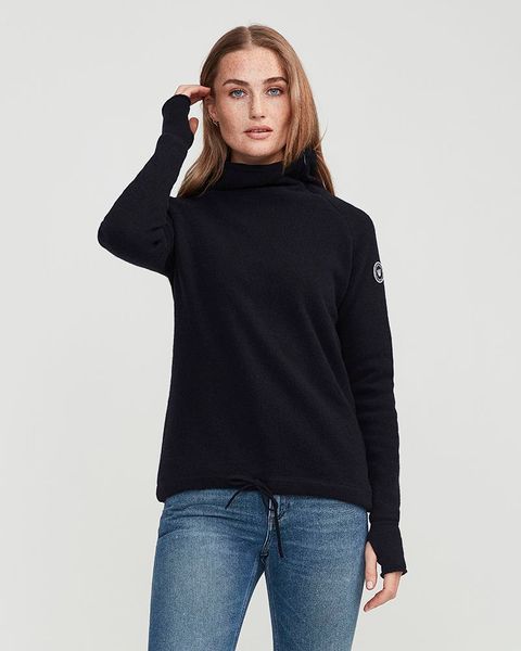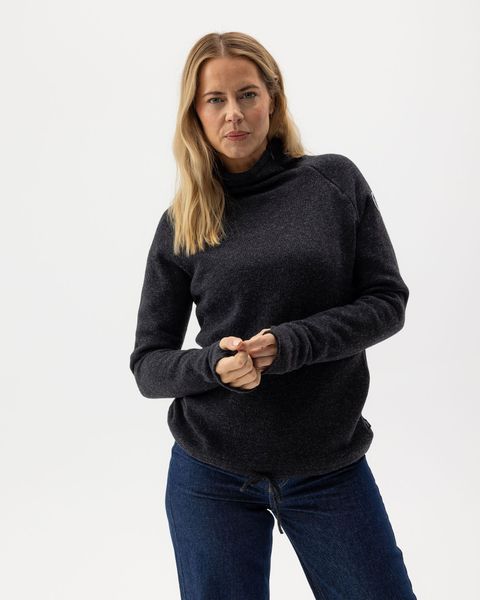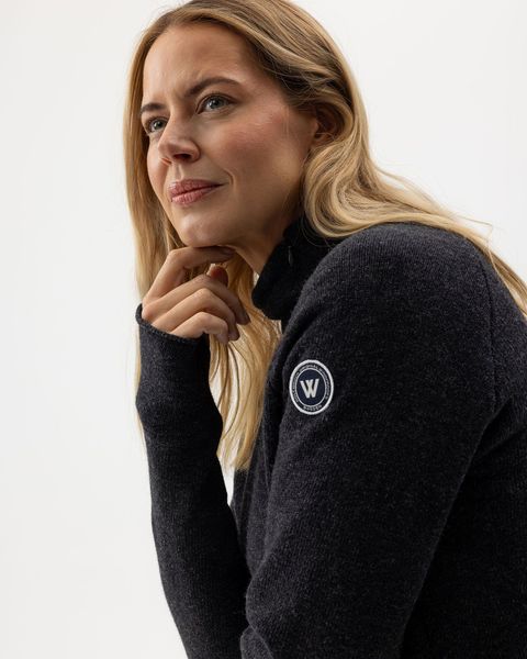 "Discover the perfect companion for windy days with this windproof knitted sweater made from a soft wool blend. The Martina WP from Holebrook combines stylish design with functional details such as a concealed zipper and a high collar that offers additional protection. Practical thumbholes provide extra warmth on chilly days, while the drawstring at the hem ensures a perfect fit."