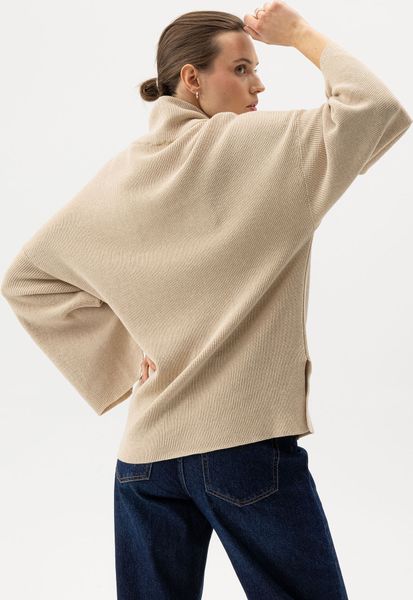 "Elegant organic cotton sweater in a patent knit with wide sleeves and sustainable production in Europe."