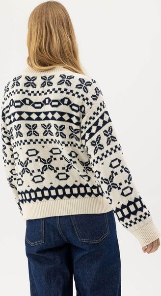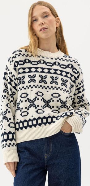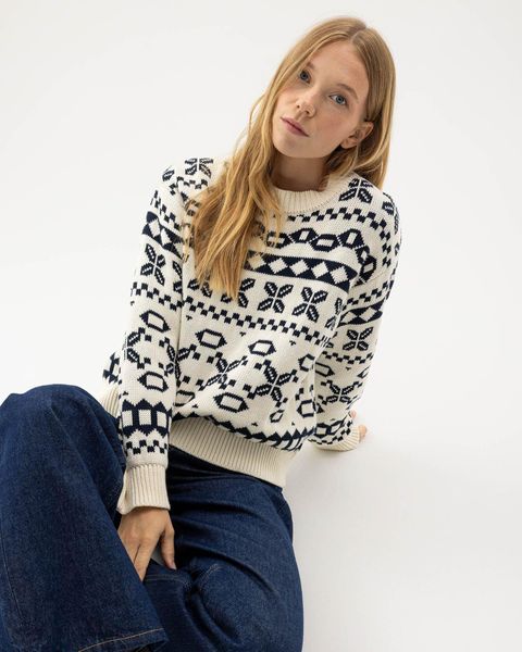 "The Novali crew sweater from Holebrook is the perfect choice for women who value comfort and style. This jacquardknitted sweater is made from 100% organiccotton and features sustainable production in Europe. With its classic pattern on the front and back, it brings timeless elegance to any wardrobe"