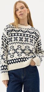 "The Novali crew sweater from Holebrook is the perfect choice for women who value comfort and style. This jacquardknitted sweater is made from 100% organiccotton and features sustainable production in Europe. With its classic pattern on the front and back, it brings timeless elegance to any wardrobe"
