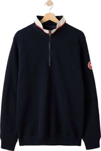 "Elegant, windproof knitted sweater made from merino wool with a high collar and certified, non-toxic materials."