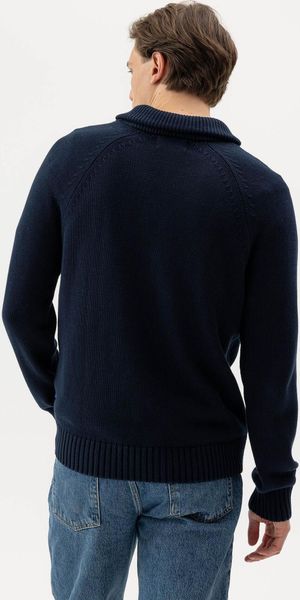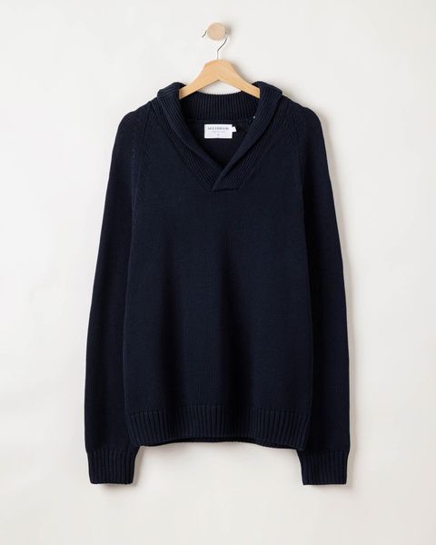 "This stylish knitted sweater from Holebrook combines timeless design with sustainable production. The Roger Shawl Collar is made from 100% organic cotton and offers maximum comfort thanks to its regular fit and raglan sleeves. The plain knit is complemented by a characteristic ribbed shawl collar, which gives the sweater an elegant touch. Perfect for everyday urban life and work, this sweater not only stands out for its fashionable look, but also for its eco-friendly production in Europe. The fully fashionable details round off the overall look and make this sweater a versatile addition to any men's wardrobe."
