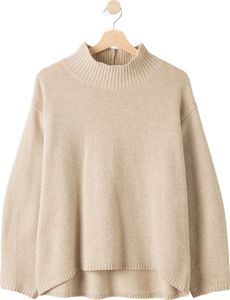 "Soft oversized sweater with a high turtleneck and ribbed details for stylish cosiness."