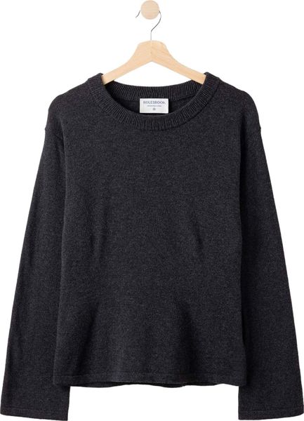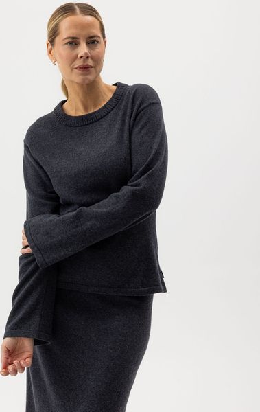 "Elegant knitted sweater made from 100% merino wool with flared sleeves and a rib-knit neckline, sustainably made in Europe."