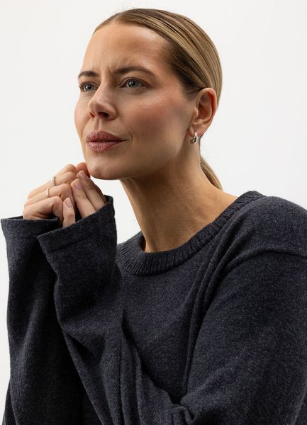 "The Wendela crew knit sweater is an elegant and stylish garment made from extra-fine merino wool. This material not only offers exceptional comfort, but also high breathability and thermal insulation. The slightly tailored fit of the sweater is complemented by the flared sleeves and slightly curved cut, giving the style a modern and feminine silhouette."