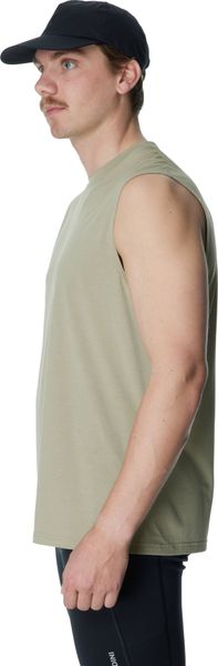 "What makes it special? The Pace series contains a collection of garments that have been developed for sporting activities. What really sets the garments apart is how they feel when you wear them. The feel of the fabrics, the fit, the way the garments move and how they sound. The Pace Air Tank-Top for men is designed for performance, but also for comfort, because we believe you perform better when you feel good. How does it work? Menu2019s Pace Air Tanku2019 top is made from Rerun Jersey, a particularly lightweight, stretchy and smooth jerseyu2019 fabric that is incredibly comfortableu2019. The fabric is made from 100% recycled polyester. The fine stitches ensure that the fabric does not rub and dries particularly quickly when it gets damp. The seams are sewn flat and positioned so that they do not chafe. When should I wear it? The Pace Air Tank-Top for men is designed for sports activities such as running, walking or mountain biking in warm or humid weather. The fabric cools and dries quickly to keep you comfortable even during longer activities. When you have completely worn out your Pace Air Tank-Top, please send it back to Houdini for recycling. This way, no raw material is wasted, but reprocessed into new, useful products."