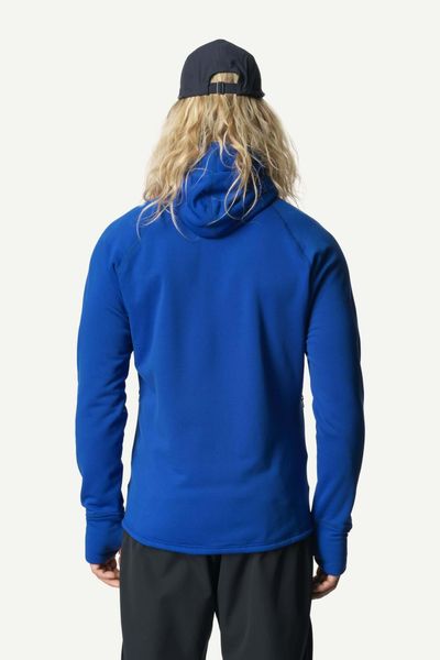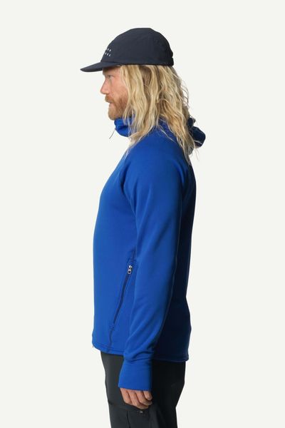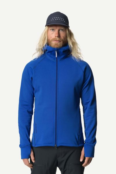 "The M's Power Houdi by Houdini is a timeless fleecejacket that has been a staple of the outdoor wardrobe for over a decade. This jacket combines classic aesthetics with modern functionality and is made from high-quality Polartec Power Stretch Pro. This material offers a robust, smooth nylon surface and a soft, cuddly inside that provides cozy warmth. The high, close-fitting collar and long sleeves with thumb loops offer additional comfort on cold days."