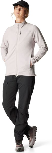 "What makes this product special? The Aero Jacket for women is a perfect example of sustainable innovation and performance going hand in hand. This lightweight, airy mid-layer jacket not only keeps you warm and comfortable, but also contributes to a world with less waste and less microplastic pollution. How does it work? The Power Air Active fabric is structurally designed to trap the airy filament fibers in small pockets in the fabric to prevent the microfibers from falling out. Compared to traditional fleece, it releases 80% less microfibers and is made from recycled and recyclable materials. The Aero Jacket for women is made from the new, updated version of the fabric, which has been completely reworked. Compared to the previous version, it is lighter, stretchier, softer, faster drying and warmer. The fabric is also fully recyclable, which means that the raw material used for this garment never has to become waste again. The Aerojacket for women is equipped with several zippered pockets and offers you plenty of options for stowing your belongings. It is adjustable at the bottom hem and has a well-fitting collar that keeps you really warm and comfortable. When should I use it? The Aerojacket for women is suitable as a lighter outer layer for hiking and running or as a second layer for skiing. It is a real multi-tool that offers warmth and breathability for all seasons. Thanks to its quick drying time, comfort and good fit, the Aero jacket for women is perfect for all types of tempo activities and can also be worn in between activities. Please do not throw this garment away if it is worn out. This garment is made from recycled and recyclable fibers. The raw materials are valuable and can be reused. Take it back to a Houdini store or to a Houdini retailer that has a Houdini recycling unitu00fcgt."