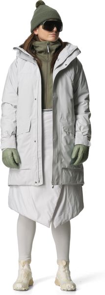 "The W's Fall in Parka by Houdini is the modern answer to the classic parka and offers a perfect combination of comfort, sustainability and functionality. Made from soft, low-noise materials, this parka offers the highest level of comfort while minimizing the environmental impact by using recyclable and recycled materials. The Primaloftu00e Silver Insulation Hi-Loft Ultra insulation provides excellent thermal insulation and breathability, making the parka ideal for cold days. Even in wet weather, the insulation remains effective, as it has been specially developed for such conditions."