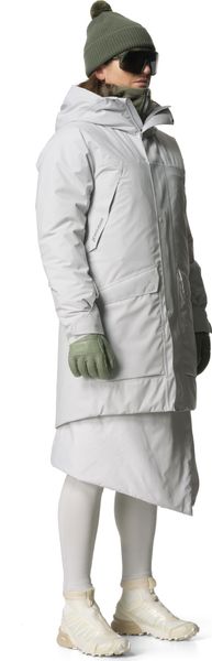 "The outer material is made from Spheric 2-layer hardshell, a recycled polyester that is completely waterproof thanks to Houdini's Atmos membrane. This membrane is 100% fluorocarbon-free and, together with the DWRtreatment, ensures optimum protection against rain and snow. The parka is not only perfect for everyday wear, but also for outdoor activities such as skiing and snowboarding, where a warmer jacket is required."