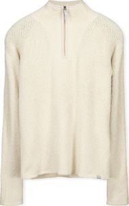 "The unique design is knitted in one piece, which means the hem and collar are integrated and not sewn on, significantly increasing comfort and durability. The material, a textured yarn, is extremely soft and lightweight, with an airy structure that provides excellent insulation. It wicks away moisture effectively and can be worn as both a first and second layer. The sustainable production minimizes waste and uses recycled polyester that can be recycled at the end of its life."