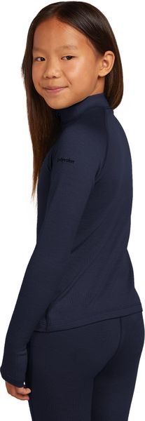 "The slim fit cut ensures a close fit that combines freedom of movement and comfort. The practical half zip fastening makes it easy to adjust the ventilation, while the thumb loops provide additional support and warmth. This garment is the perfect choice for active children who want to play outside and enjoy nature even in cooler temperatures."