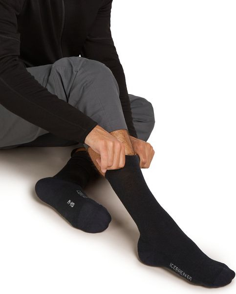 "The Lifestyle Light Crew socks from Icebreaker are the perfect choice for men who value comfort and durability in everyday life and leisure. These socks are made from a high-quality, lightweight merino blend that is not only soft and breathable, but also offers excellent climate-regulating properties. They are ideal for urban and professional use, as they are hardly noticeable due to their low weight and yet ensure a comfortable feel all day long."
