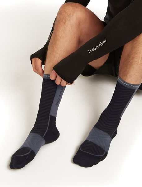 "The M Mer Run+ Ultralight Crew socks from Icebreaker are the ideal choice for passionate runners who value comfort and functionality. These ultra-light running socks in crew-length are made from a high-quality merino blend that ensures excellent breathability and temperature regulation. Whether you prefer short sprints or long distances, these socks offer the perfect companion for any distance."