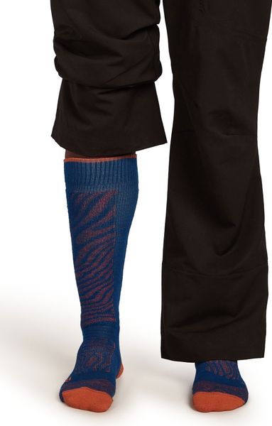 "The unique all-over print of these ski socks is inspired by the fascinating patterns of a mountain's slope lines, which not only gives them an appealing look, but also awakens your thirst for adventure. The breathable properties of merino wool ensure that moisture is effectively wicked away, keeping your feet at a comfortable temperature, no matter how challenging the conditions."
