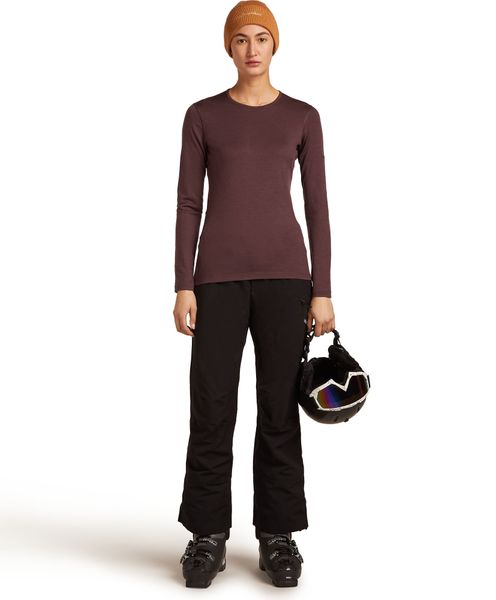 "The W 200 Oasis Long Sleeve Crewe from Icebreaker is the ideal garment for women who are looking for a versatile and breathable base layer for their skiing adventures. Made from 100% merino jersey, this long-sleeved shirt not only offers excellent breathability, but also natural comfort that lasts all day. The slim fit ensures a flattering fit that can be worn perfectly under other layers of clothing without being bulky."
