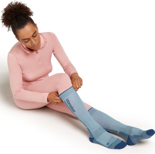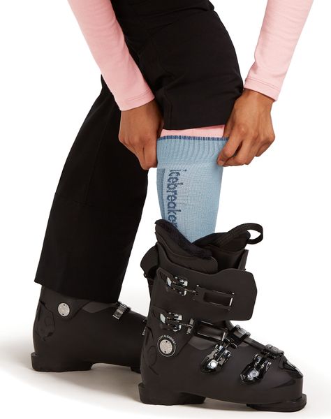 "Lightly padded, breathable merino wool ski socks for women, ideal for ski touring and freeskiing."