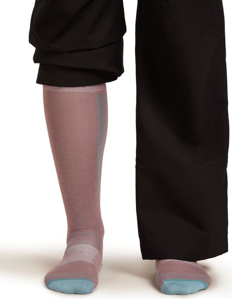 "Lightweight merino wool ski socks for women, ideal for ski touring and freeskiing, offering comfort and temperature regulation."