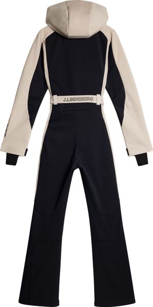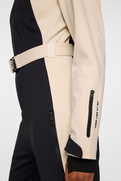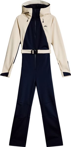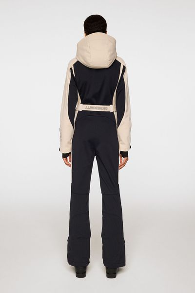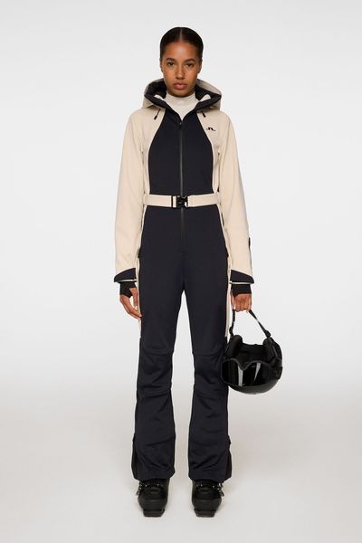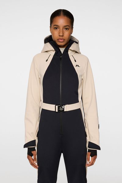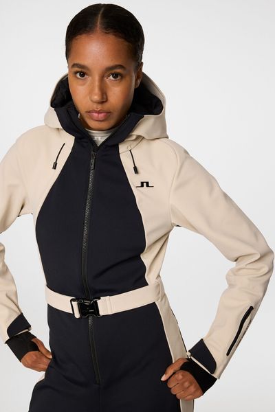 "A piece for every occasion. The Jacki snowsuit has an ergonomic fit, a tight waist and is equipped with 4-wege-stretch. Quilted knees and snow gaiters ensure optimum performance, while the two zippers at the front and the J.Lindeberg-logo waistband ensure a great style. The model is 177 cm tall and wears size Su00f6u00dfe."