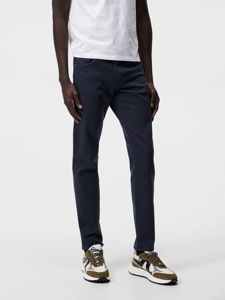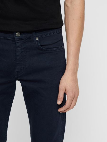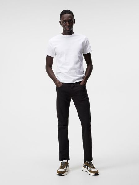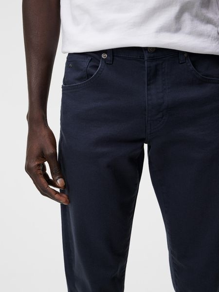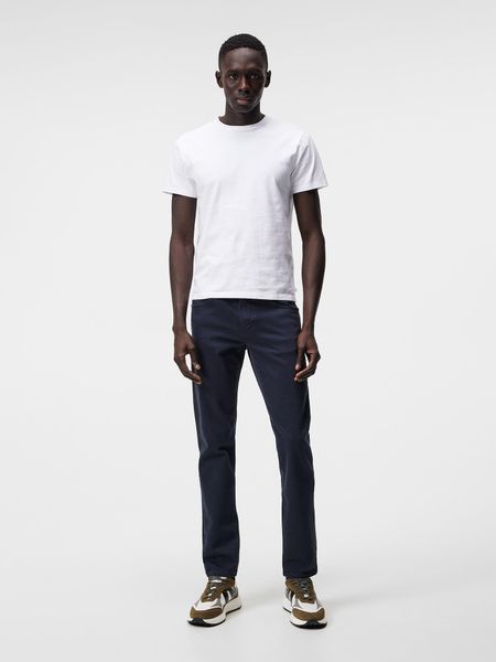 This season JL is introducing the classic bestselling Jay Solid Stretch in organic cotton with comfort stretch. The slim fit jeans have a mid-rise waist and a classic 5-pocket making that has been overdyed with an enzyme wash to resist fading.- Antique silver button and rivets- Zip closure at fly- Classic 2-needle stitch making- Black leather patch at back waist- Organic Cotton- No. COMD130222400