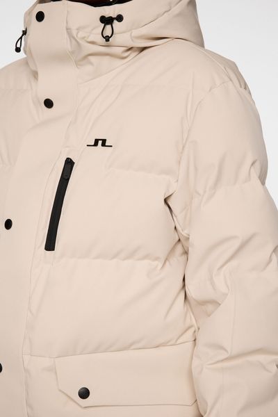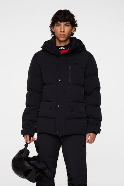 "Bold and insulated. The Leo Jacket has a down-filled collar and hood, a waterproof construction up to 20K and fleece-lined pockets. J.Lindeberg branding on the chest and technical zippers give it a modern touch and provide the necessary warmth."