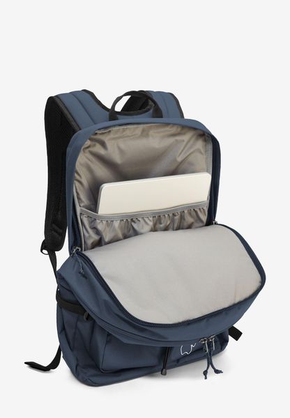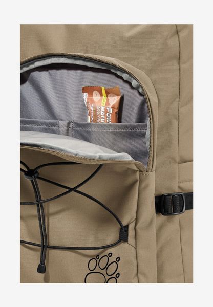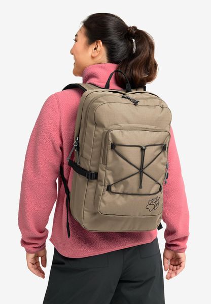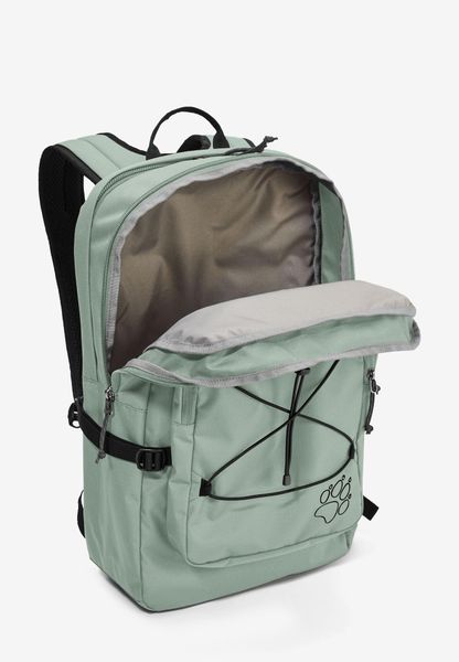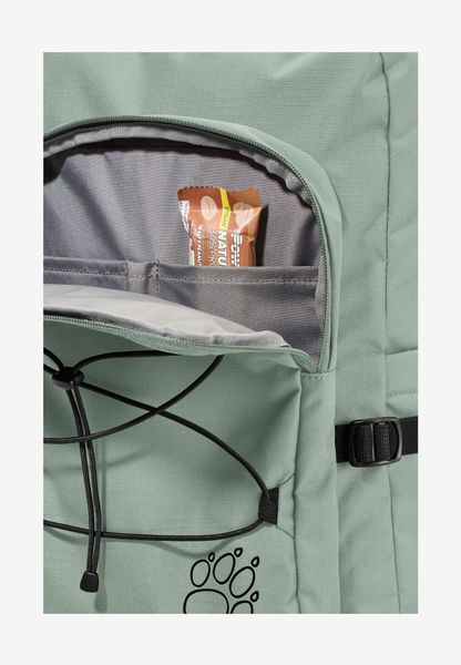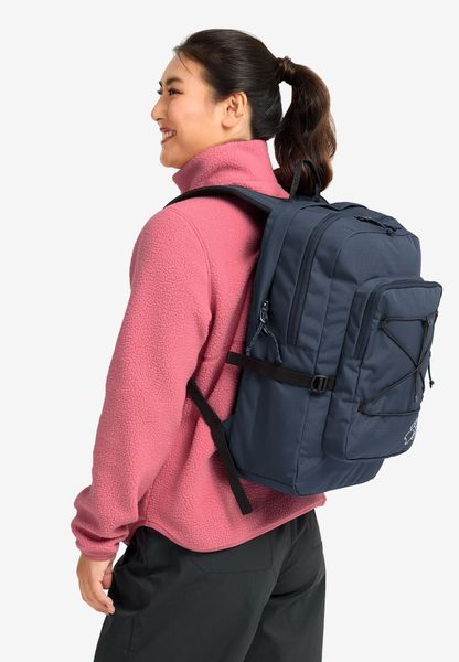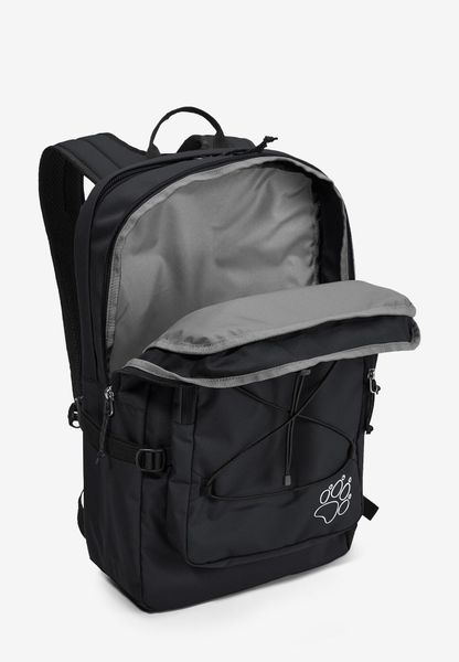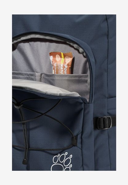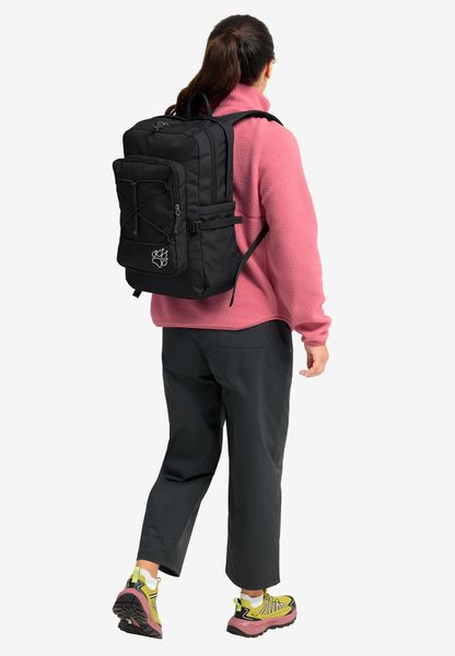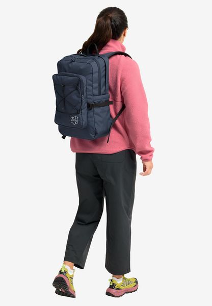 "The backpack is equipped with a front pocket, a back pocket and a side pocket to facilitate access to frequently needed items. The dimensions of 51 x 38 x 9 cm make it compact enough for everyday use without sacrificing functionality. The SNUGGLE UP system from Jack Wolfskin guarantees even load distribution and a comfortable feel, even when worn for longer periods of time."