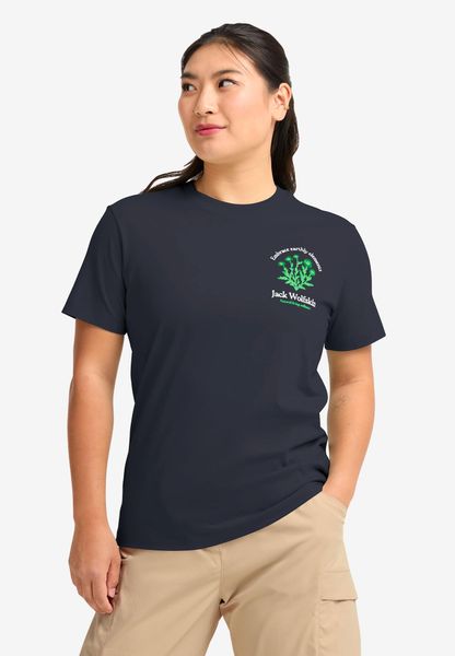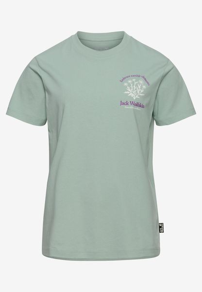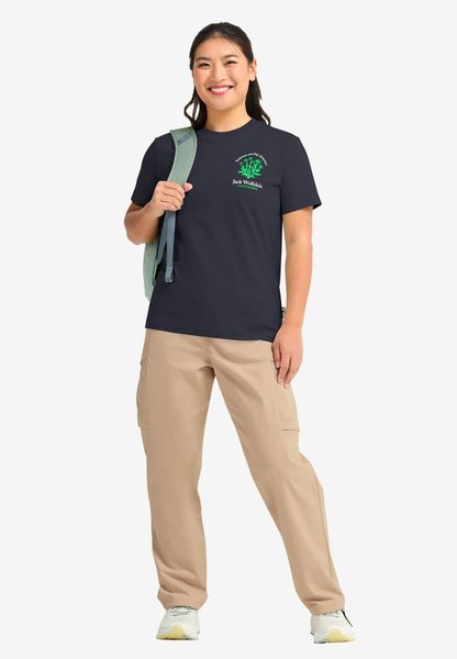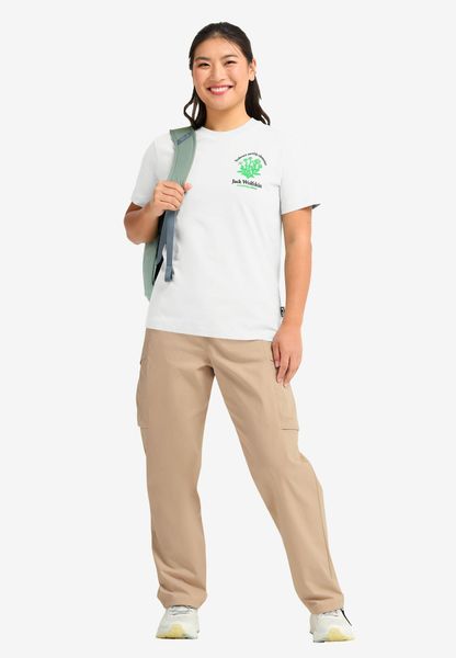 "The CAREFREE T W from Jack Wolfskin is the perfect choice for women who value comfort and style in everyday life. This Tshirt made of high-quality organiccotton impresses with its casual design and an inspiring mottoprint that radiates freedom and a sense of adventure. Ideal for urban and leisure activities, this T-shirt is comfortable to wear and will accompany you every step of the way. With a back length of 62 cm, it offers an ideal fit and can be wonderfully combined as a base layer. Enjoy the carefree lightness that this shirt brings to spontaneous outdoor explorations."