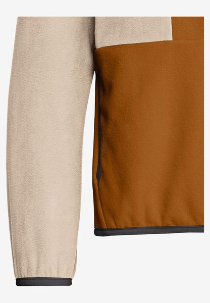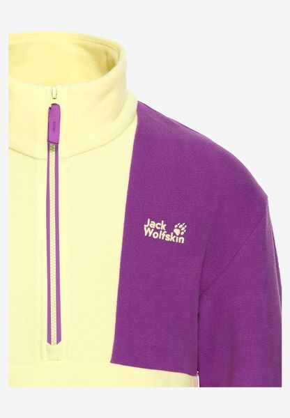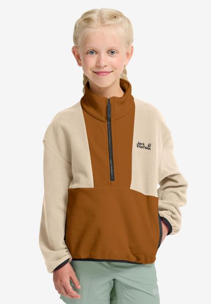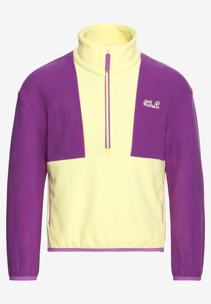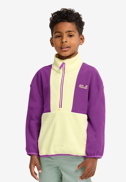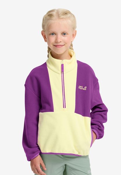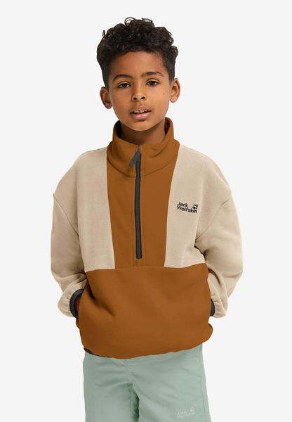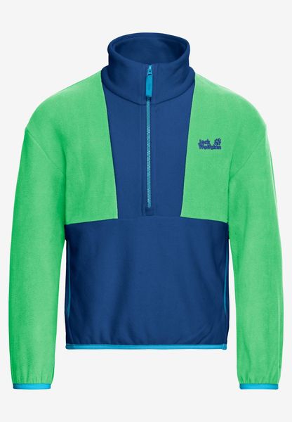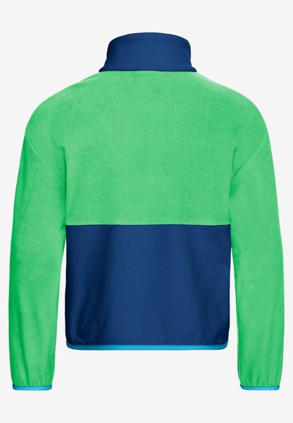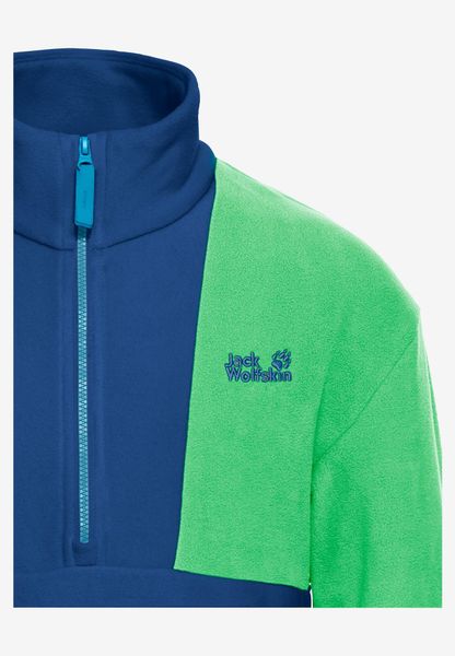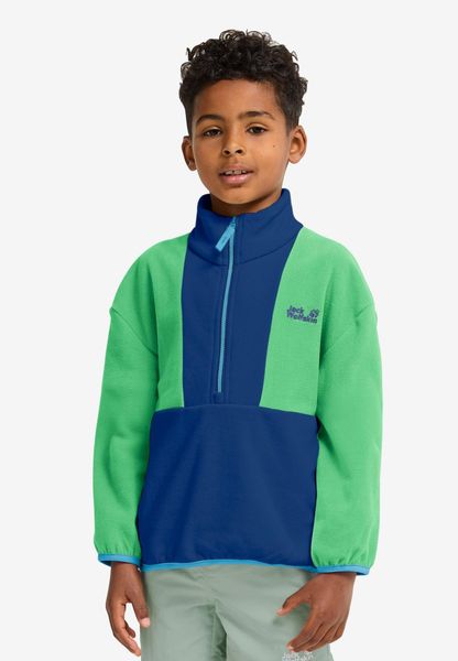 "The Colorblock Taunus Half Zip K by Jack Wolfskin is the ideal fleece sweater for little explorers who value comfort and style in equal measure. Made from soft, stretchy fleece, this sweater not only offers cozy warmth, but also the freedom of movement needed for active children. The practical half zip makes it easy to put on and take off and allows for optimal ventilation, while the elasticated cuffs ensure a perfect fit."