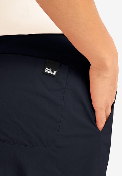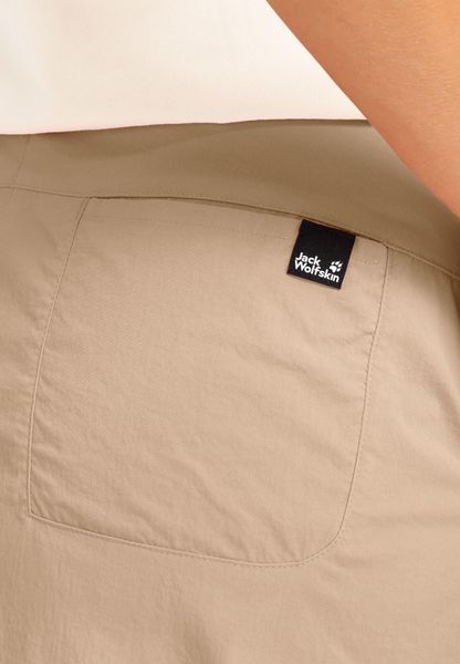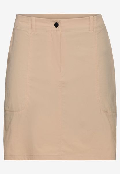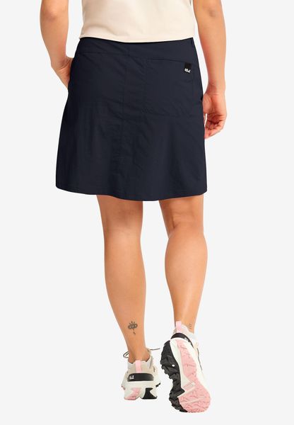 "The Desert Skort W from Jack Wolfskin is the perfect companion for active women who value comfort and style in their everyday urban life. This innovative outdoorskort combines the lightness of a skirt with the functionality of shorts, offering the best of both worlds. Made from high-quality nylon, the skort is quick-drying and extremely breathable, making it ideal for spontaneous adventures in the city or at work."