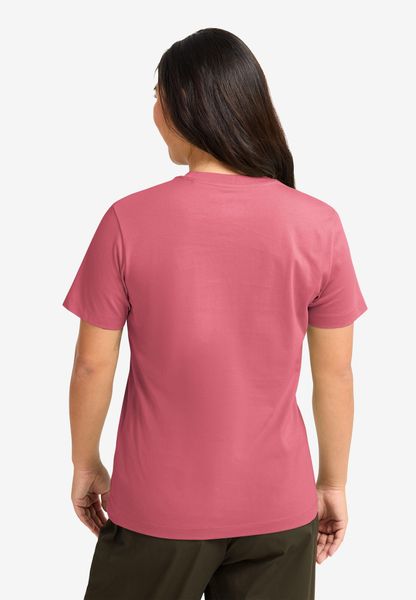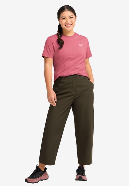 "The ESSENTIAL T W from Jack Wolfskin combines simple design with outstanding functionality and is the perfect choice for active women. With its regular fit and comfortable cut, it offers unrestricted freedom of movement, ideal for everyday wear and leisure activities. Made from high-quality certified organic cotton, this T-shirt is not only very comfortable to wear, but also sustainable. The natural fibers make it an excellent baselayer for urban and professional lifestyles."