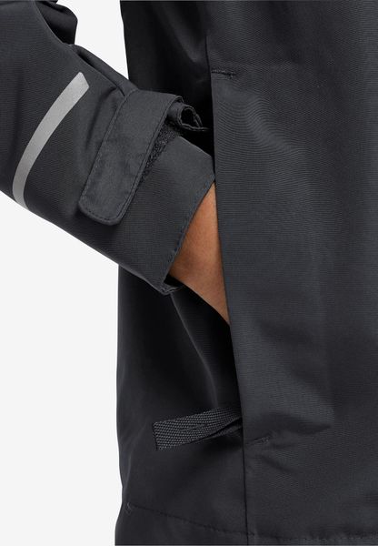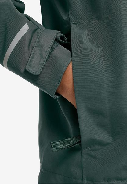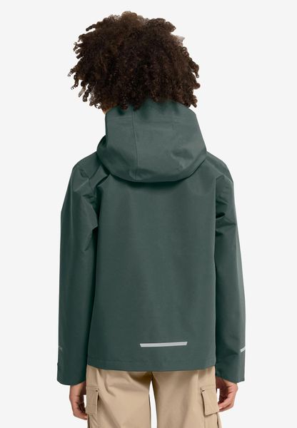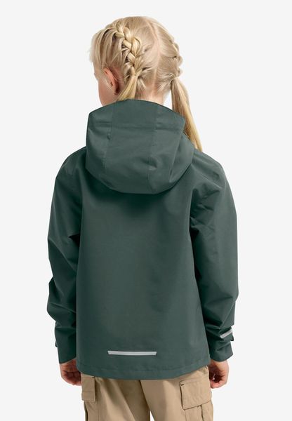 "Practical details such as the two hip pockets with water-repellent zippers offer space for small items and ensure that everything stays dry even in inclement weather. The full-Zip-Reiu00df fastener makes it easy to put on and take off, while the windproof and waterproof construction protects little explorers from the elements. With a back length of 50 cm, the jacket is perfectly tailored to the needs of children and offers maximum freedom of movement"